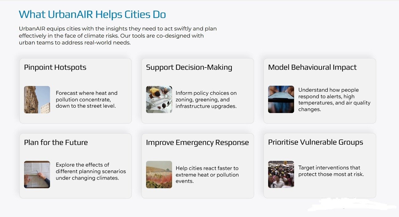 UrbanAIR’s potential benefits are substantial. By helping cities anticipate and mitigate heat and air pollution, the project contributes directly to: